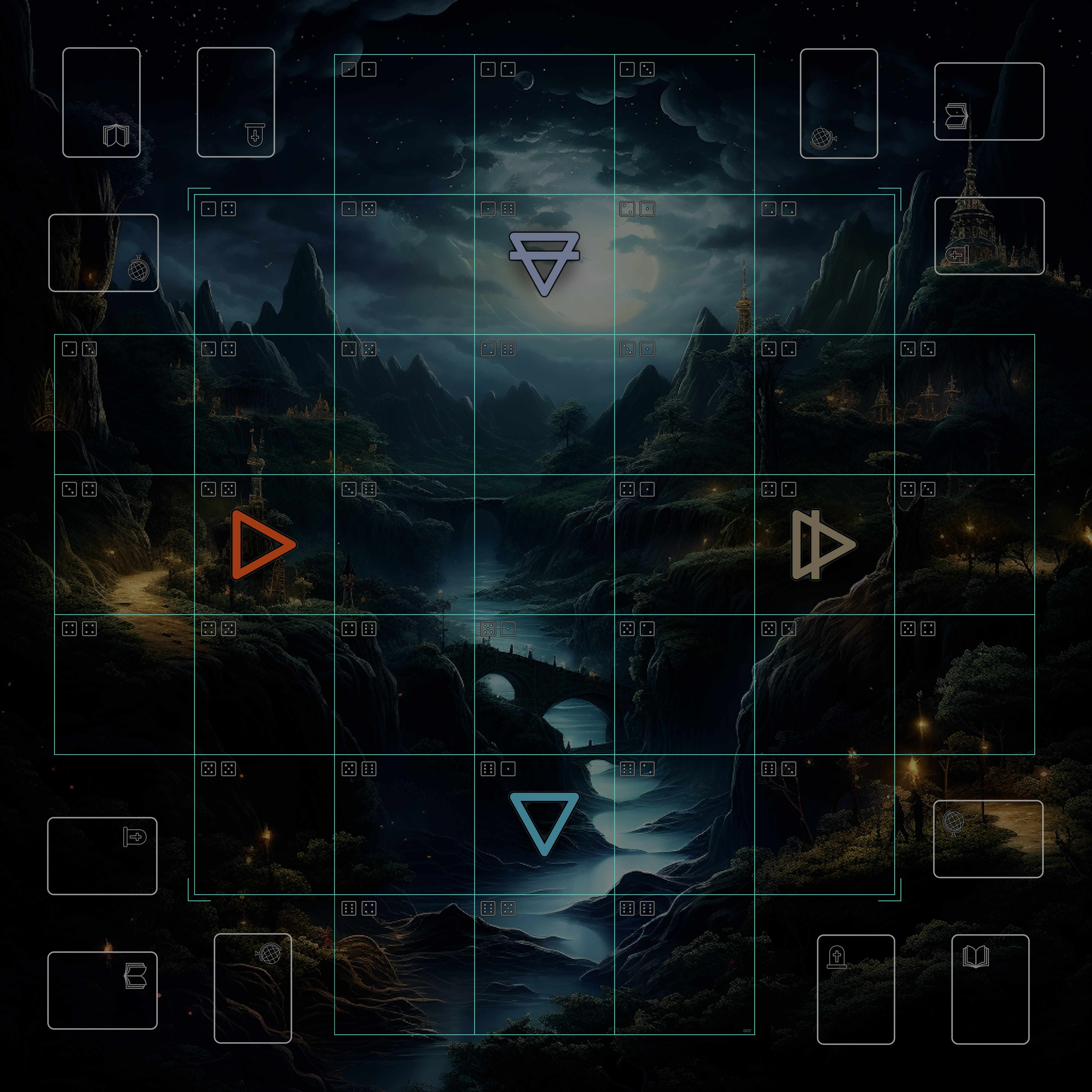 These image files are designed to be printed on a 36″x36″ neoprene wargaming mat. The default file is meant for playing on a 4-sided table, where each player sits along their own board edge. The rotated file is meant for a 2-sided table, where two players sit side-by-side.